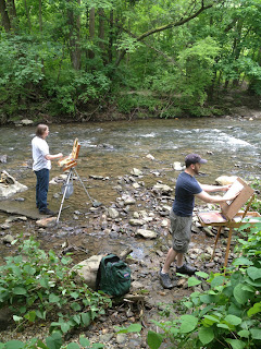 Today the boys and I ventured into the city to Laurel Hill Cemetery to paint. It was a scorcher! I think this was by far the hottest day I have been out painting so far this summer and the humidity today was clam bake! Aaron Thompson go into the city before Will Sentman and I who car pooled together. We found Aaron who had already done a painting and decided to stop as the light had changed too much. So we all drove around to find another spot to paint. Laurel Hill is just incredibly beautiful and there are probably hundreds of spots and view to paint...fantastic victorian sculptures and tombs, graves of every description from the 1800's into the 1900's. Its kind of overwhelming in that way, but search we did until we found a nice spot higher up in the cemetery. Aaron broke off and kept searching but we caught up later on.